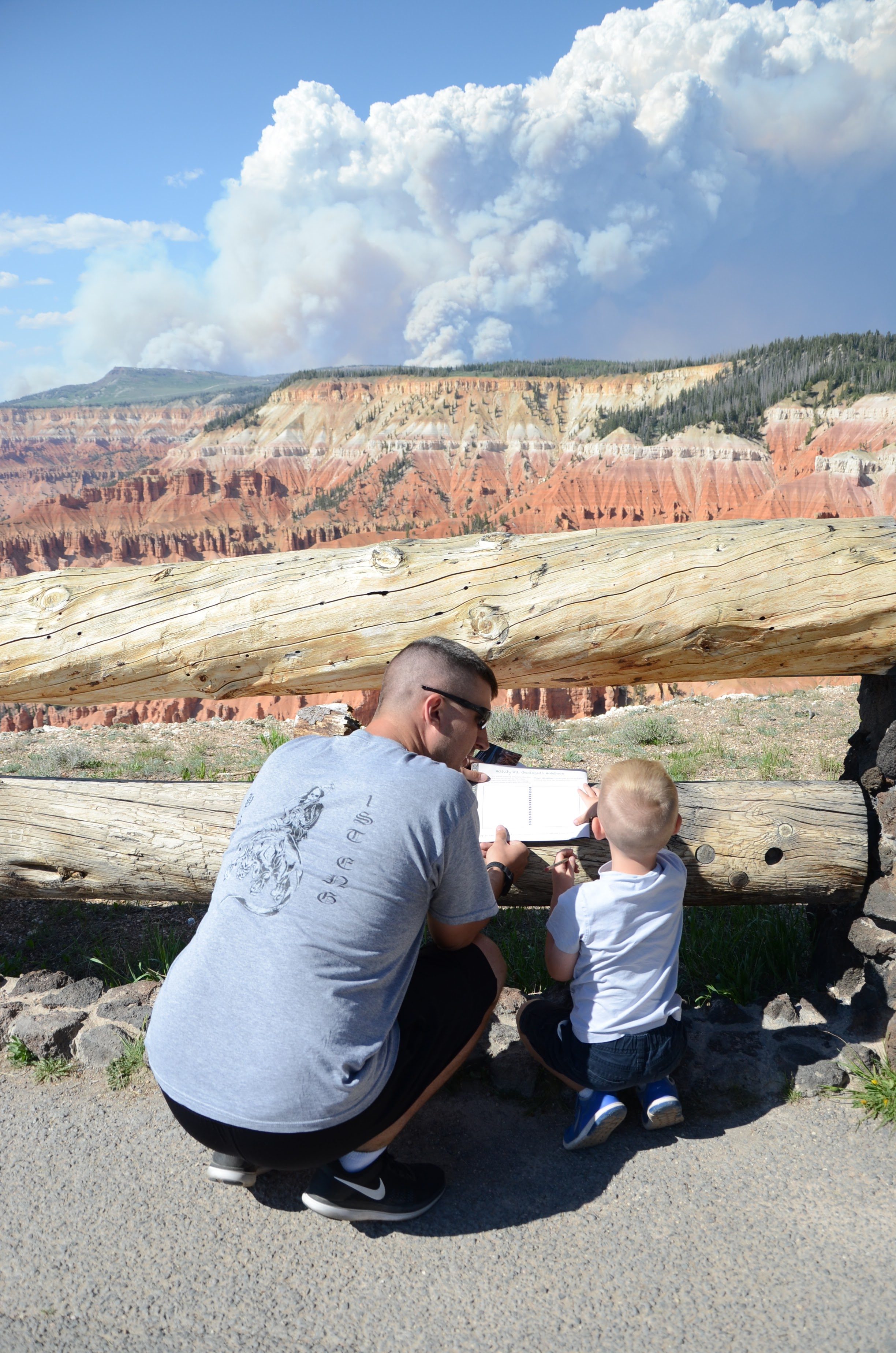 While we were there, there was a wildfire nearby. That’s what the smoke is in the pictures (and you’ll see some smoke in Bryce Canyon pictures further down in this post from the same fire).